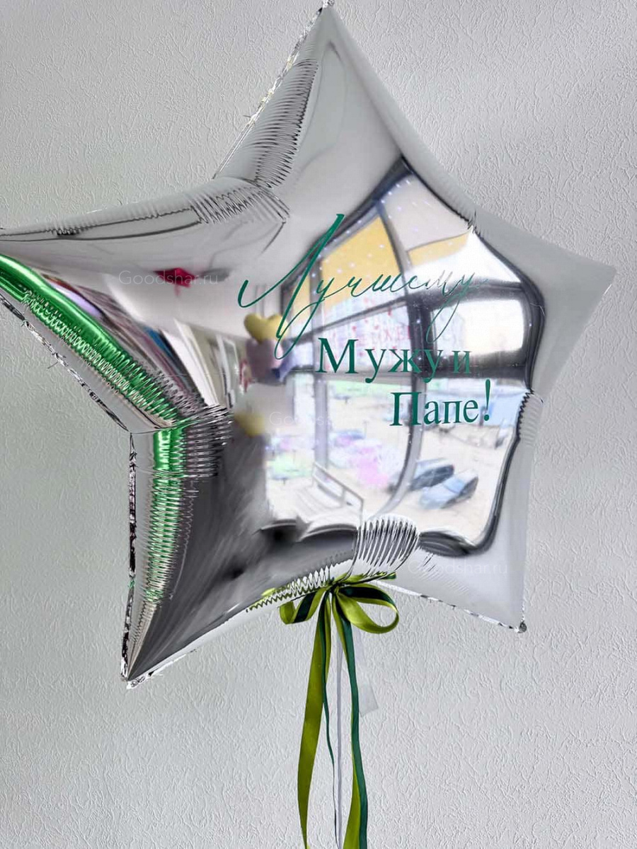 Большая фольгированная звезда благородного серебряного цвета — эффектный и самодостаточный подарок. Индивидуальная надпись превращает её в личное послание, которое тронет сердце мужа и папы. Отличный вариант для тех, кто ценит простоту, но хочет сказать по-настоящему важные слова.