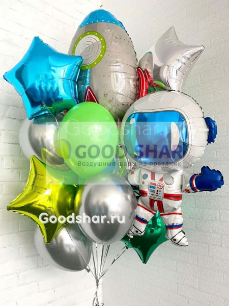 Настоящее космическое путешествие для вашего праздника. Фольгированные ракета и космонавт в окружении сияющих звёзд, хромированных и классических шаров создают атмосферу загадочного космоса и больших открытий. Идеально для детского дня рождения, тематической вечеринки или любого события, где хочется добавить немного волшебства.