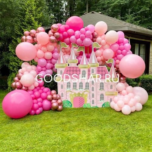 Фотозона на каркасе из гирлядны латексных шаров с картонным замком.