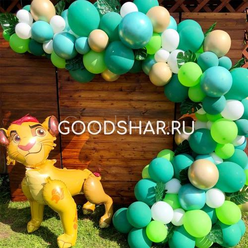 Гирлянда из латексных шаров, листья и фольгированный шар мультгероя.