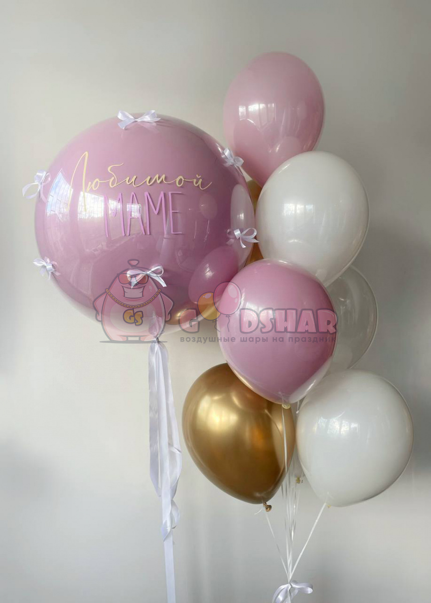 - "Стеклянный" шар-гигант с бантиками и индивидуальной надписью,