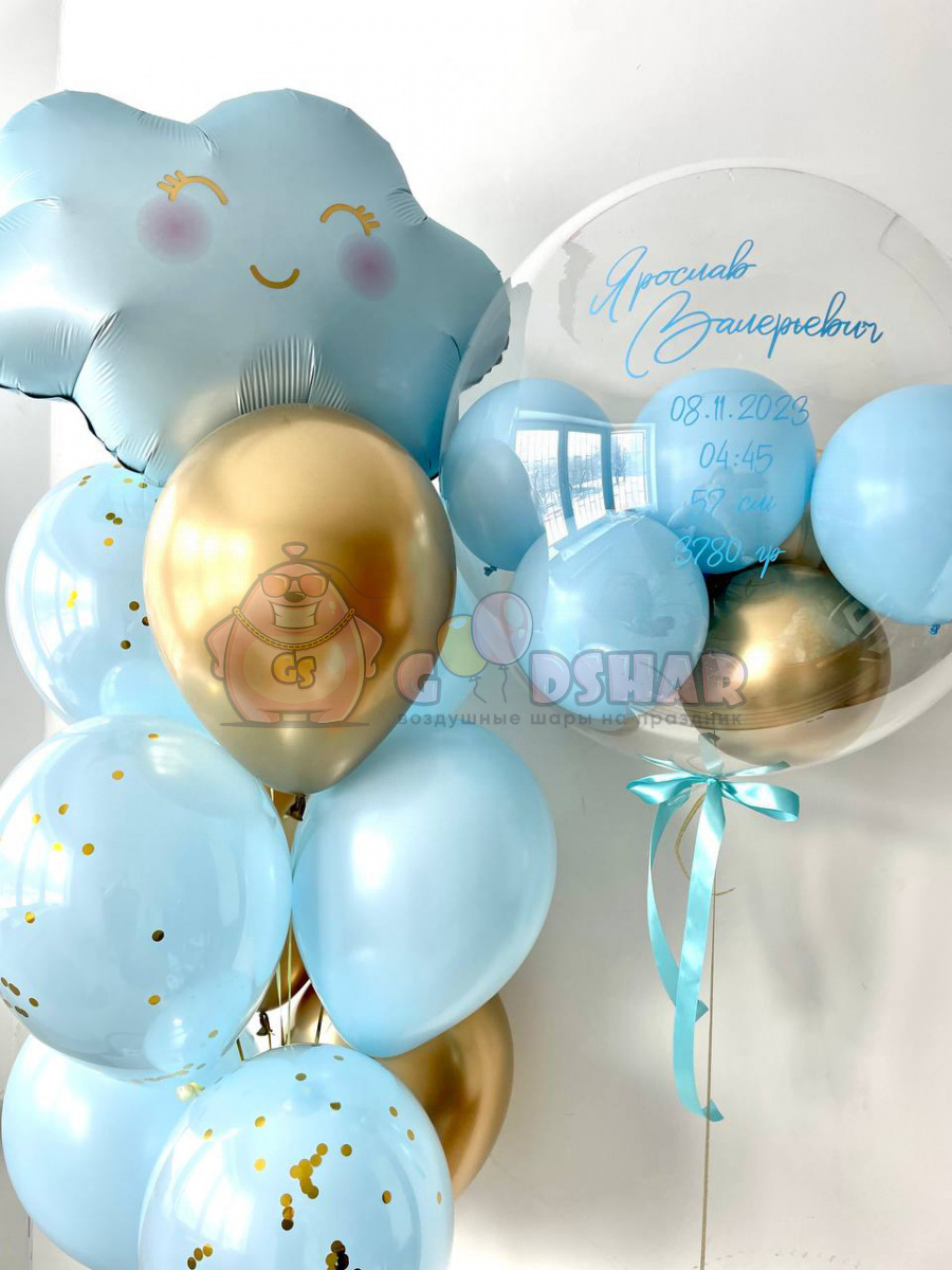 - Шар "Баблс" с индивидуальной надписью и наполнением из шариков,