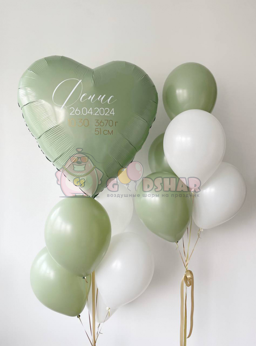 Фольгированное сердце с индивидуальной надписью и латексные шары