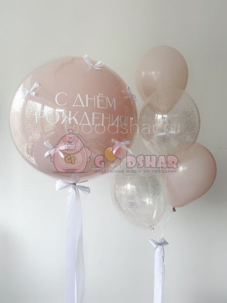 - "Стеклянный" шар с индивидуальной надписью и бантиками,