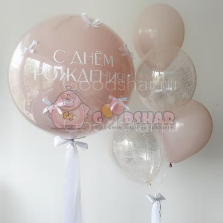 • «Стеклянный» шар с индивидуальной надписью и бантиками