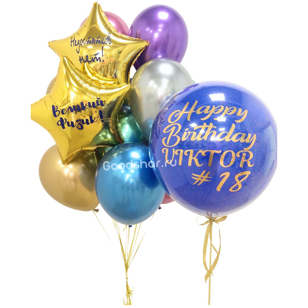 • Индивидуальные надписи на гиганте и звёздах делают поздравление уникальным (текст сообщите менеджеру).