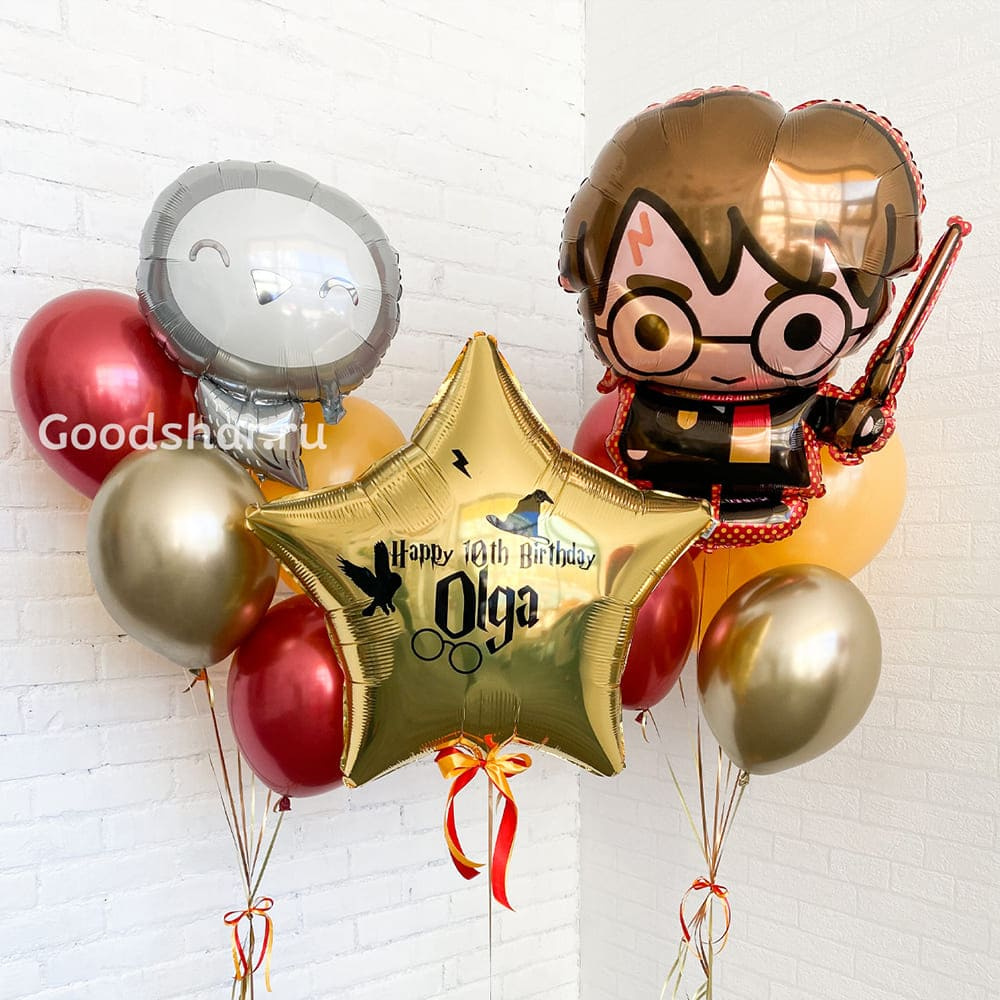 Главные символы магического мира — Гарри Поттер, его верная сова Букля и большая фольгированная звезда — создают атмосферу чуда. Идеальный подарок на день рождения, выпускной или тематическую вечеринку.