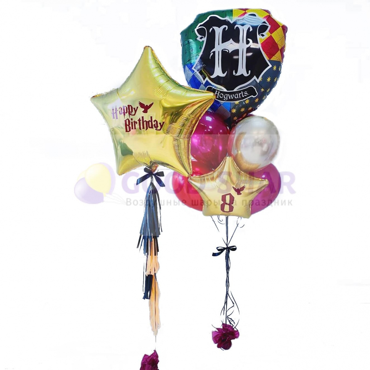 Набор воздушных шаров Герб Хогвартса и большая звезда