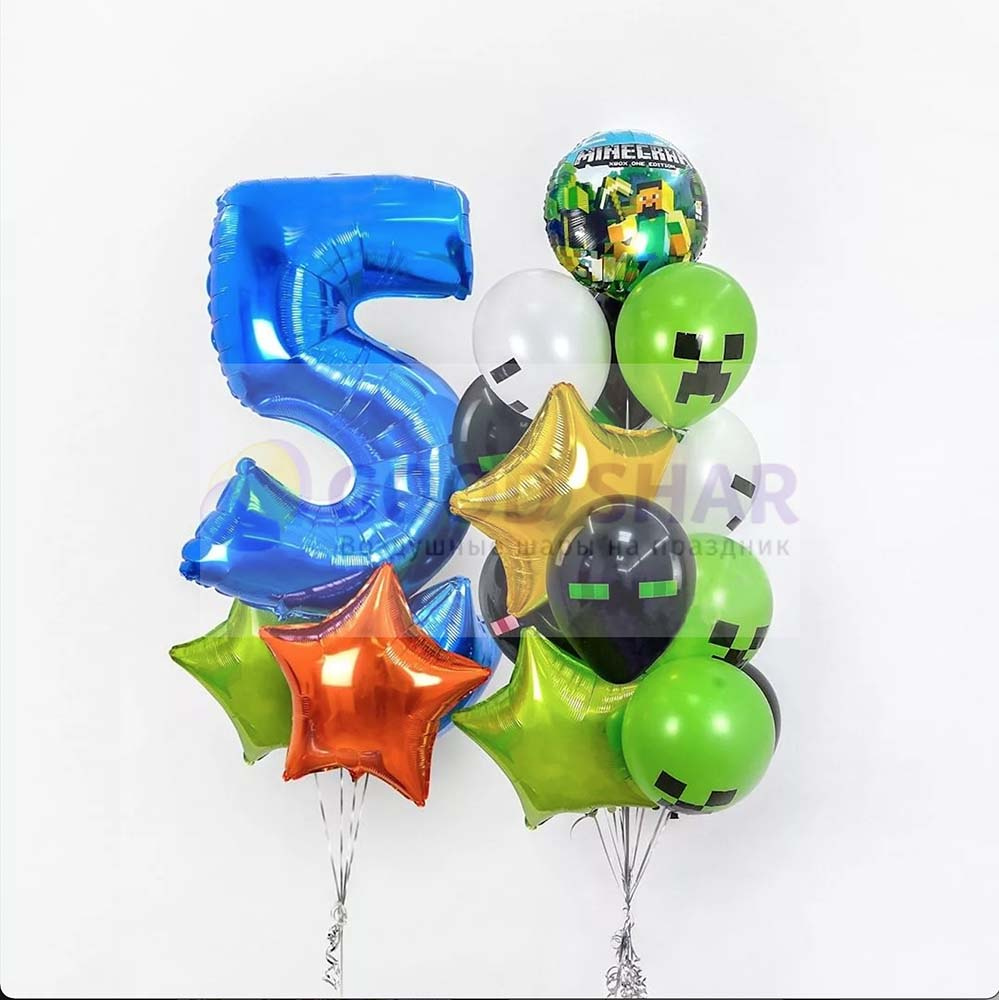 Погружение в мир пиксельных приключений для настоящего фаната игры. Фольгированная цифра, тематические шары с рисунком Minecraft и латексные «пиксельные» шары создают атмосферу любимой вселенной. Идеально для дня рождения или тематической вечеринки.