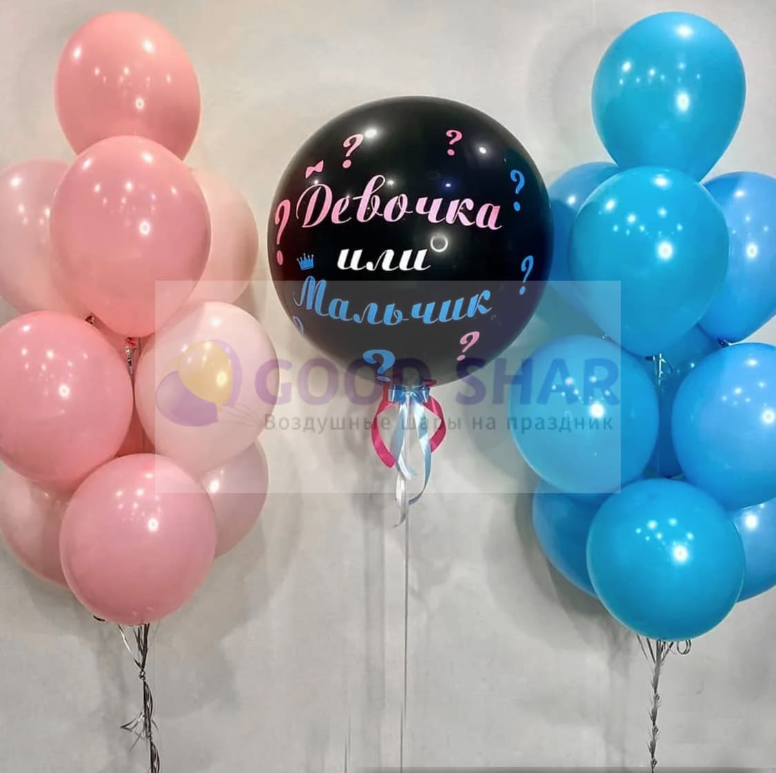 • Шар-гигант наполняется розовым или голубым конфетти — выбор за вами.