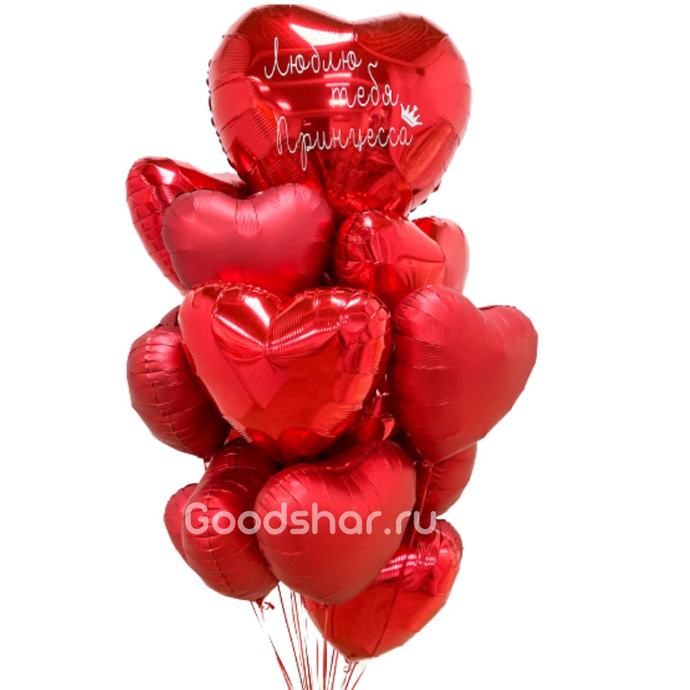 Романтичная композиция из 16 фольгированных сердец. Большое сердце с вашим личным посланием в окружении 15 сияющих сердец — честный и красивый способ сказать о чувствах. Идеально для Дня всех влюблённых, годовщины, предложения или просто тёплого сюрприза.