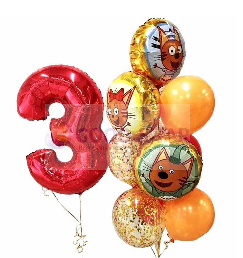 • Фольгированные круглые шары «Три кота» (Компот, Коржик, Карамелька) — 3 шт.