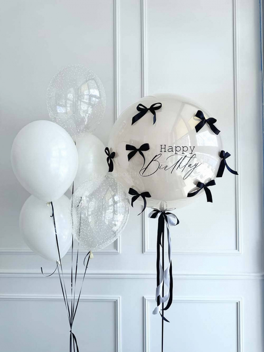 На шарах выполняется индивидуальная надпись или поздравление, желаемый текст сообщите менеджеру при подтверждении заказа.