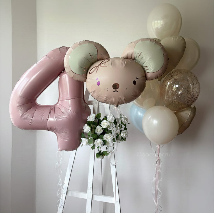 Набор воздушных шаров для девочки "Розовая мышка"