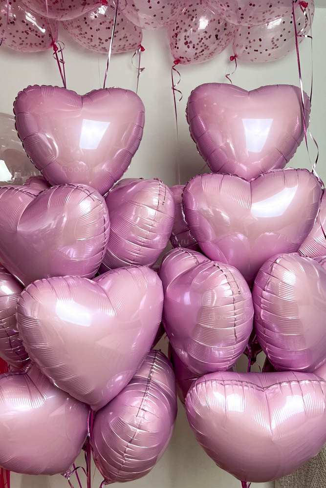 Объёмный и эффектный набор из фольгированных сердец и воздушных шаров с конфетти под потолком. Идеально подойдёт для признаний, сюрпризов и особенных моментов.