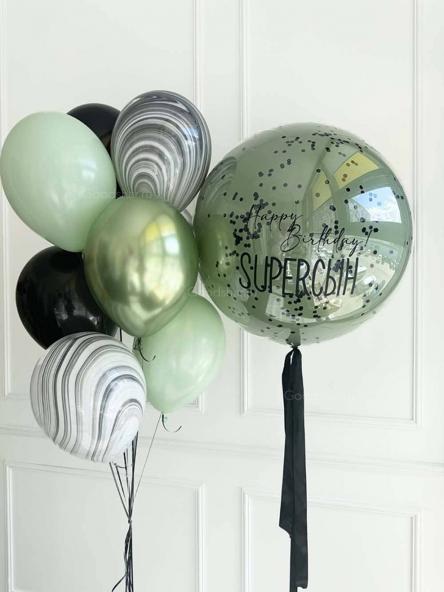 На шарах выполняется индивидуальная надпись или поздравление, желаемый текст сообщите менеджеру при подтверждении заказа.