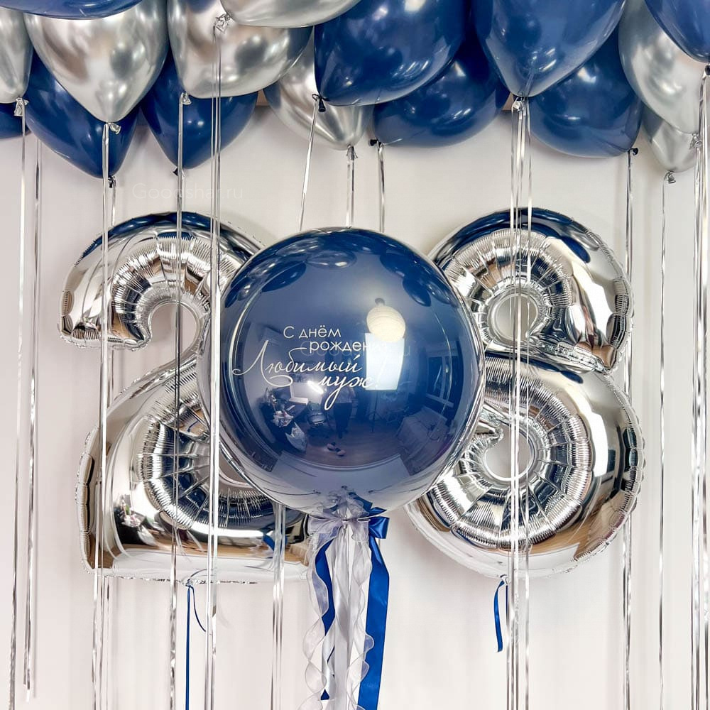 Стильная композиция в синих и серебряных оттенках для эффектного празднования дня рождения.