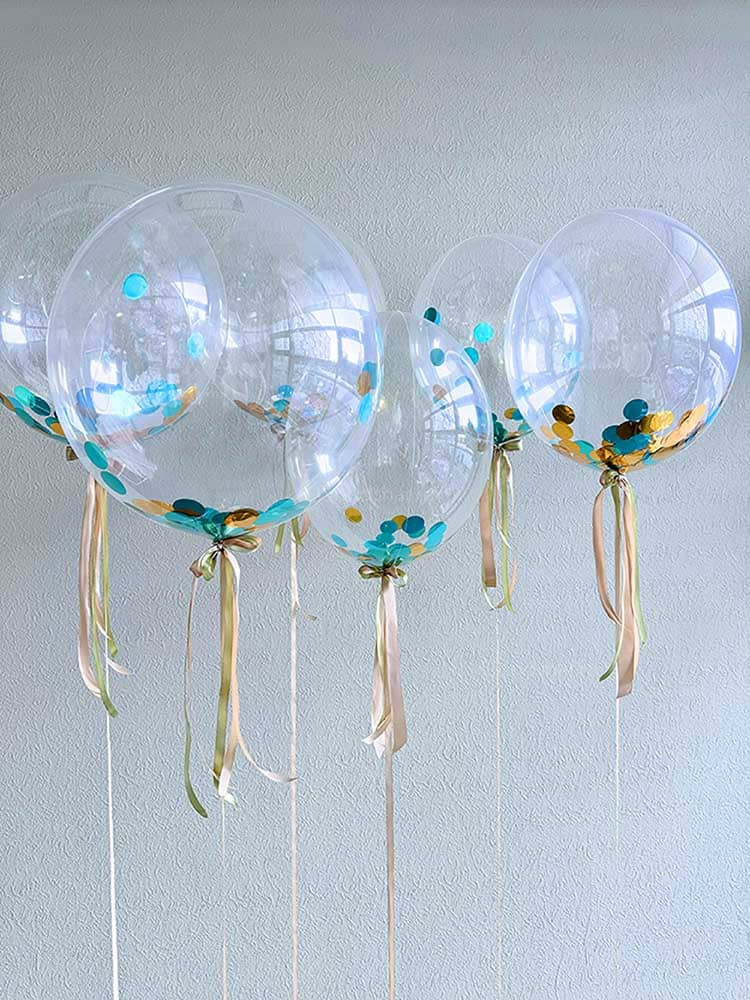 Завораживающий набор из 6 прозрачных баблсов в зеленых и золотых тонах с искрящимся конфетти внутри — словно пузырьки с волшебным эликсиром, приносящим удачу. Зеленый цвет символизирует рост и процветание, золотой — богатство и успех, а танцующее внутри конфетти создает эффект настоящей магии. Идеальный выбор для дня рождения, открытия бизнеса или подарка человеку, которому желают большой удачи во всех начинаниях.
