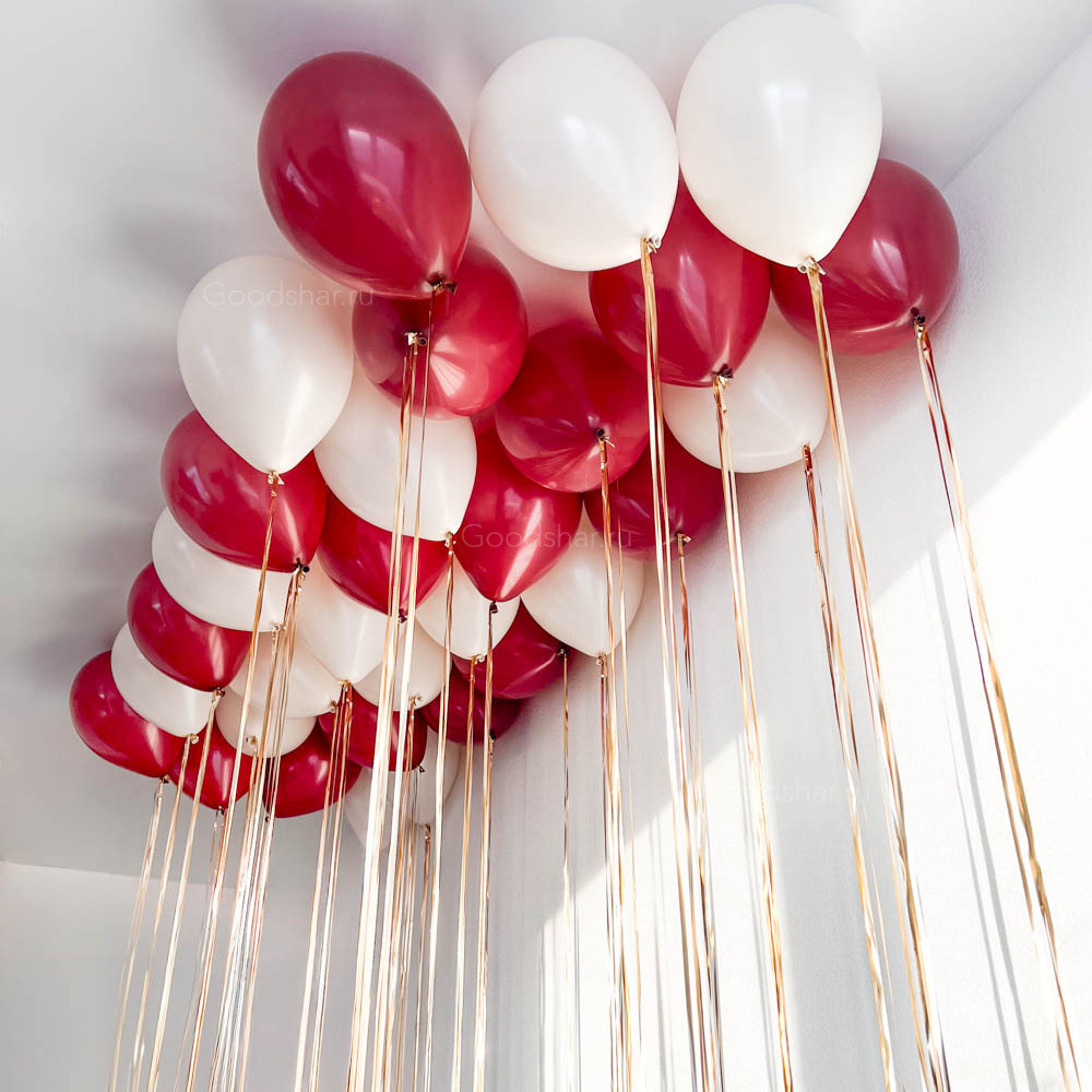 Роскошная и сдержанная композиция, вдохновлённая классическим сочетанием насыщенного красного и утончённого бежевого — как знаменитый десерт «Красный бархат». 30 парящих под потолком шаров создают эффект величественного облака, наполняя пространство теплом, страстью и элегантностью. Идеальный выбор для свадьбы, юбилея, дня рождения или любого события, где нужна атмосфера роскоши и вкуса.