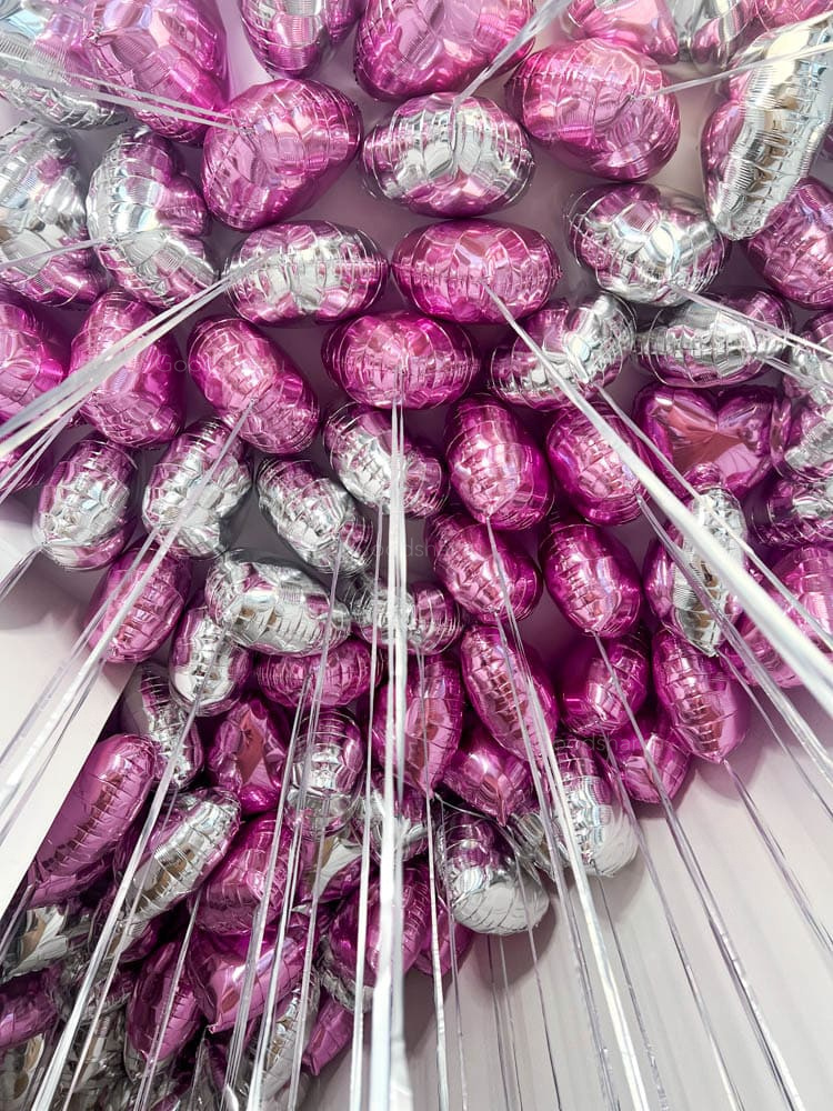 Величественная и трогательная композиция, созданная для настоящей сказки. 60 фольгированных сердец в нежных розовых и благородных серебряных тонах с мерцающим дождиком на каждом создают эффект волшебного сада, где сбываются мечты. Идеальный выбор для дня рождения, юбилея, девичника или любого праздника, где именинница чувствует себя главной героиней своей собственной сказки.