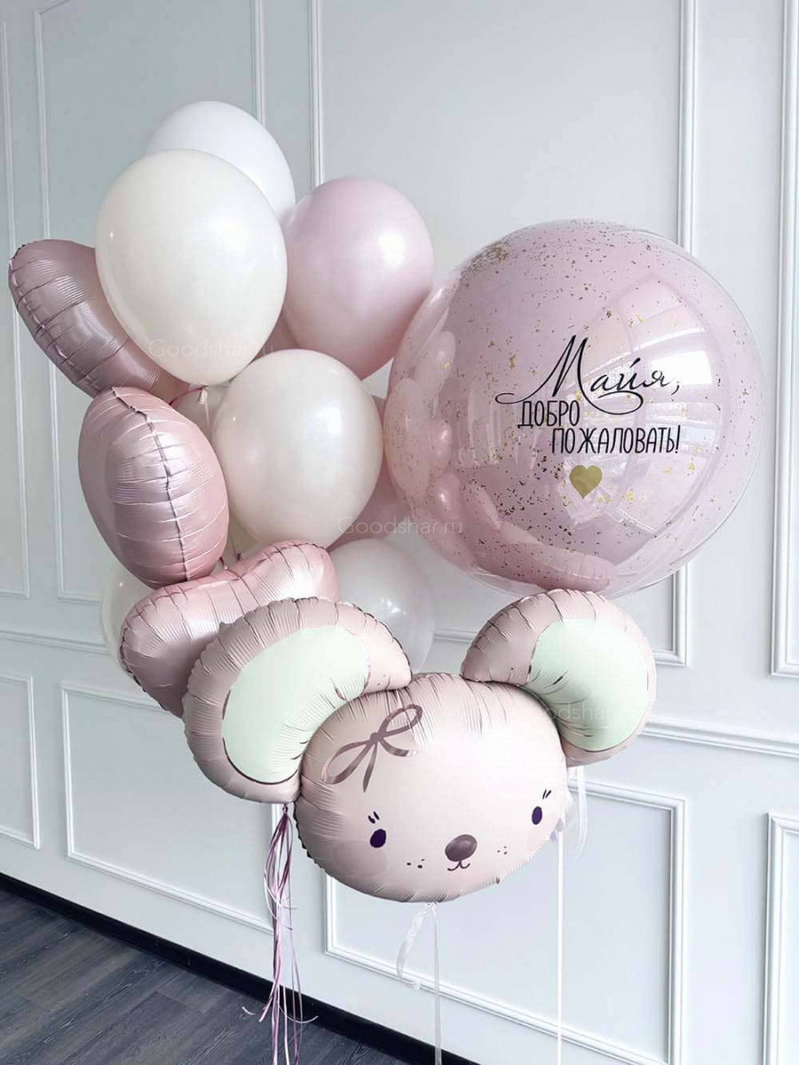 Набор воздушных шаров на выписку для девочки "Бабблс и мышка"