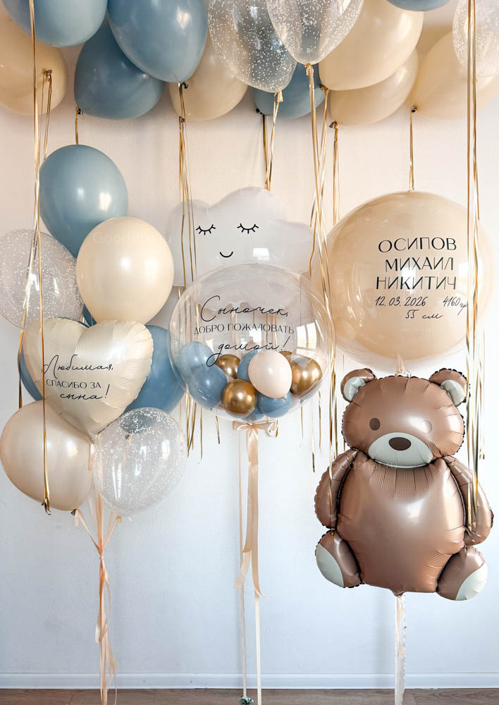 Набор воздушных шаров на выписку для мальчика "Нежное облачко и медвежонок"