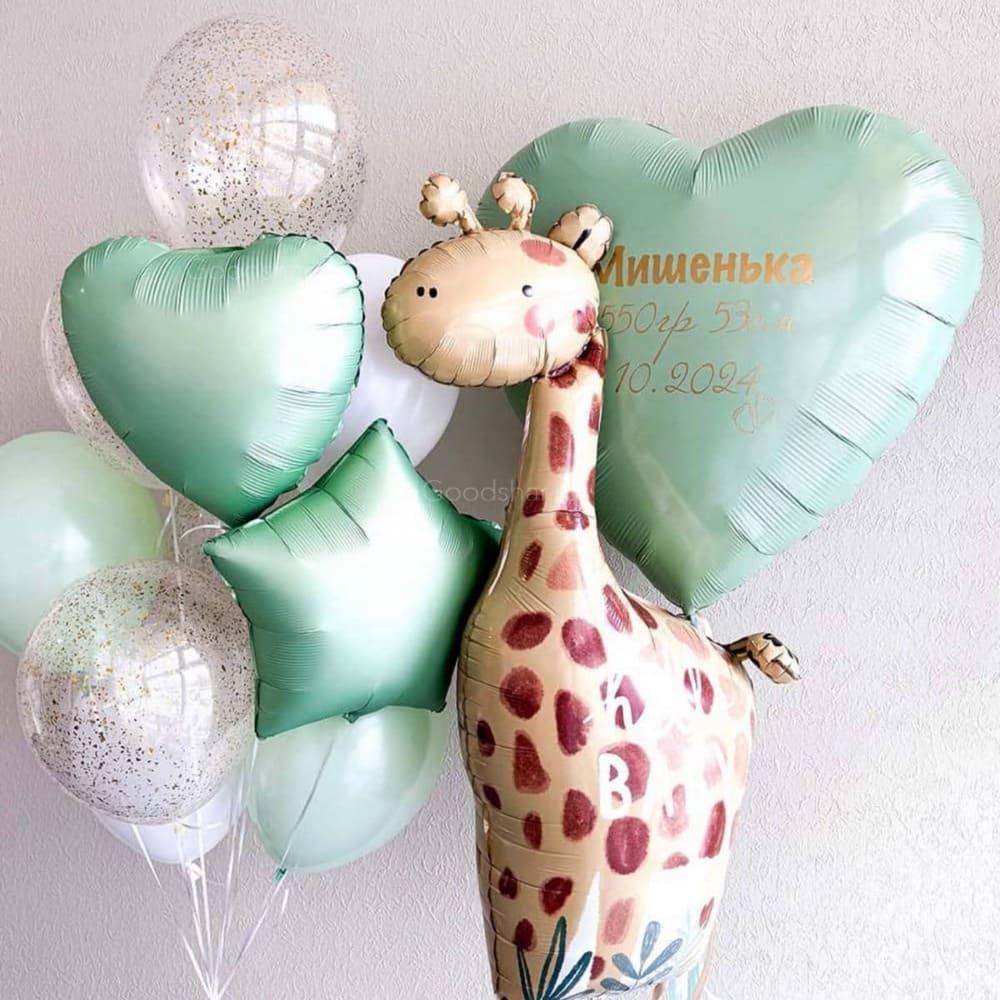 Набор воздушных шаров на выписку для мальчика с жирафиком №603