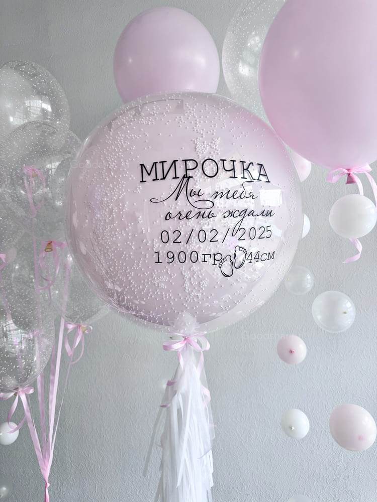 Нежный сет с персональным шаром и воздушными акцентами.
