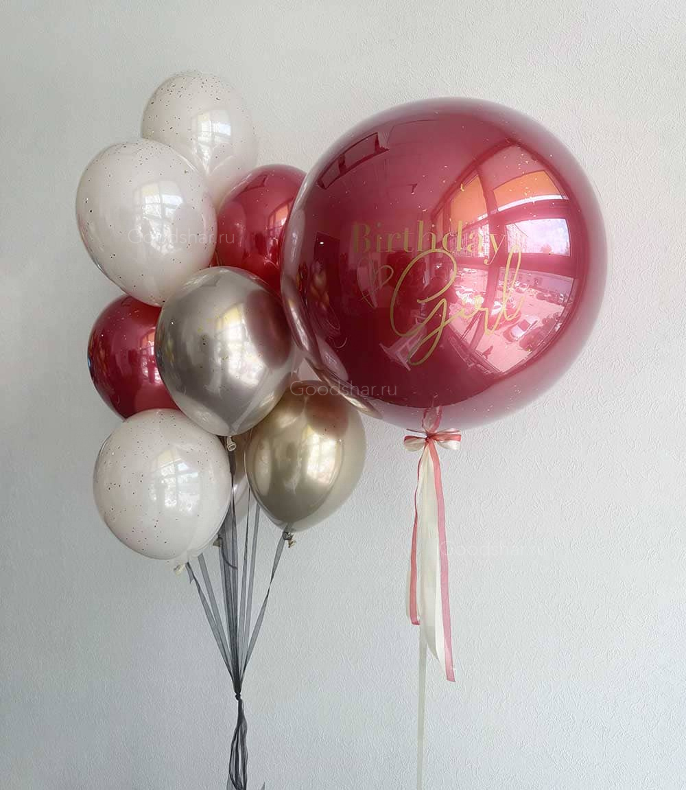 Эксклюзивный набор для настоящих ценителей роскоши и стиля. В центре внимания — стеклянный шар-гигант насыщенного красного цвета с индивидуальной надписью и наполнением, который становится главным акцентом и хранителем важных слов. Фонтан из 12 премиальных шаров Даббл стафф с конфетти создаёт эффект драгоценного сияния: белые добавляют элегантности, красные — страсти, золотые и серебряные — блеска драгоценных металлов. Идеальный выбор для юбилея, корпоратива, свадьбы или любого события, где важны статус и безупречный вкус.