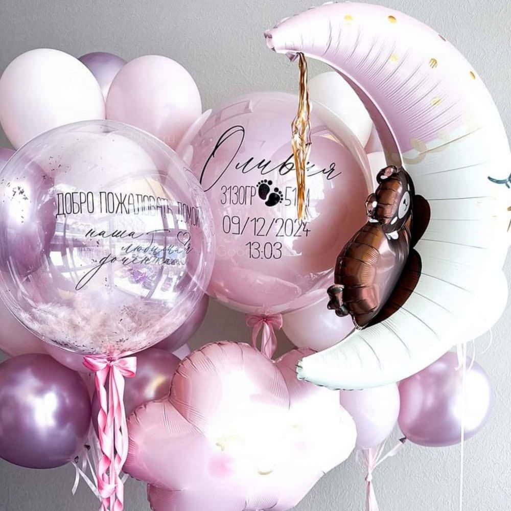 Шар Баблс-гигант с индивидуальной надписью, наполнением и лентами - 1 шт.