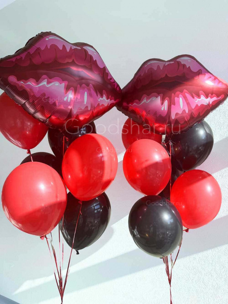 Смелая и эффектная композиция, созданная для роковой женщины. В центре внимания — фольгированный шар в форме губ, который становится главным акцентом и символом соблазна. Два объёмных фонтана из чёрных и красных шаров создают мощную энергетику, подчёркивая контраст страсти и загадочности. Идеальный выбор для дня рождения, девичника или подарка для той, кто знает себе цену и любит привлекать внимание.