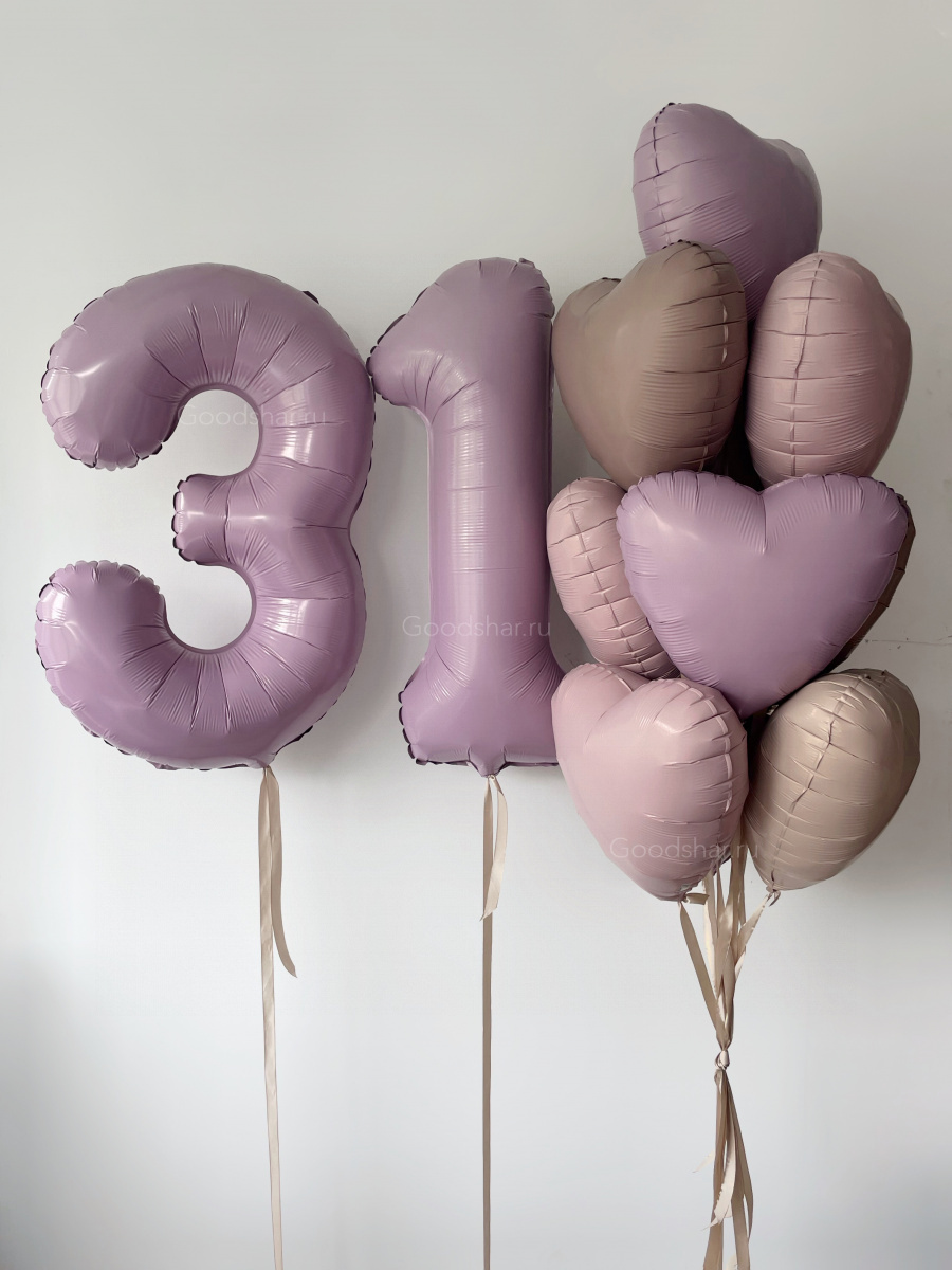 Набор из цифр и фольгированных сердец. Можно исполнить в другом цвете.