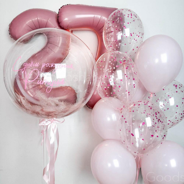 Дерзкая, нежная и очень стильная композиция для празднования 27-летия в культовом стиле Барби. В центре внимания — прозрачный баблс с наполнением и индивидуальной надписью, который станет главным посланием. Фольгированные розовые цифры 2 и 7 подчеркнут важность даты. Объёмный фонтан из 10 розовых латексных шаров и шаров с мерцающим конфетти создаёт атмосферу настоящей Барби-вечеринки — яркой, гламурной и незабываемой. Идеальный выбор для дня рождения, юбилея или любого события, где именинница чувствует себя главной героиней своей собственной истории.
