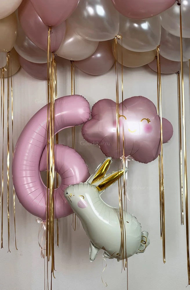 Нежный сет с цифрой и фигурными шарами для детского праздника.