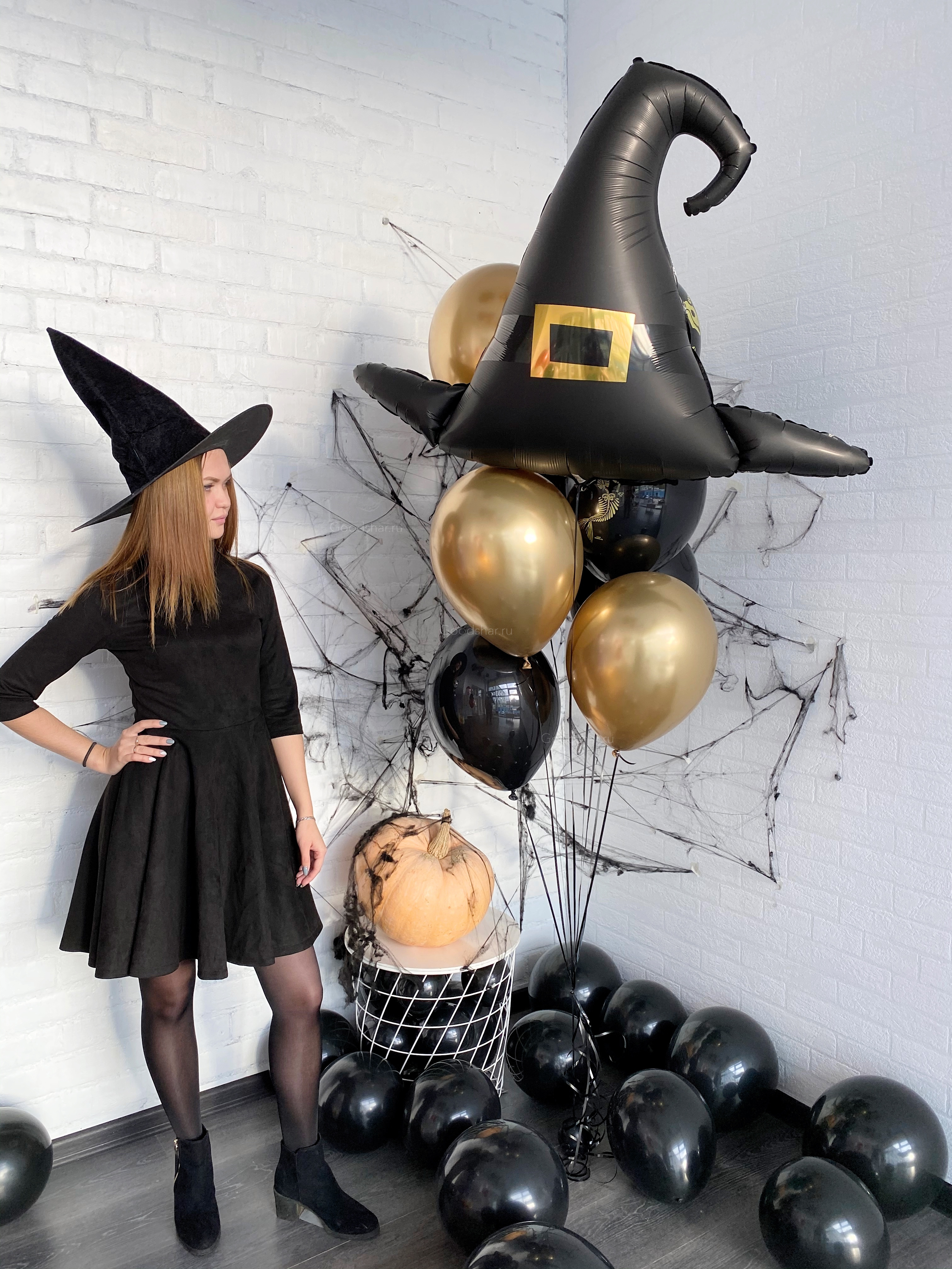 Набор из ведьминской шляпы и латексных шаров. Можно исполнить в другом цвете.