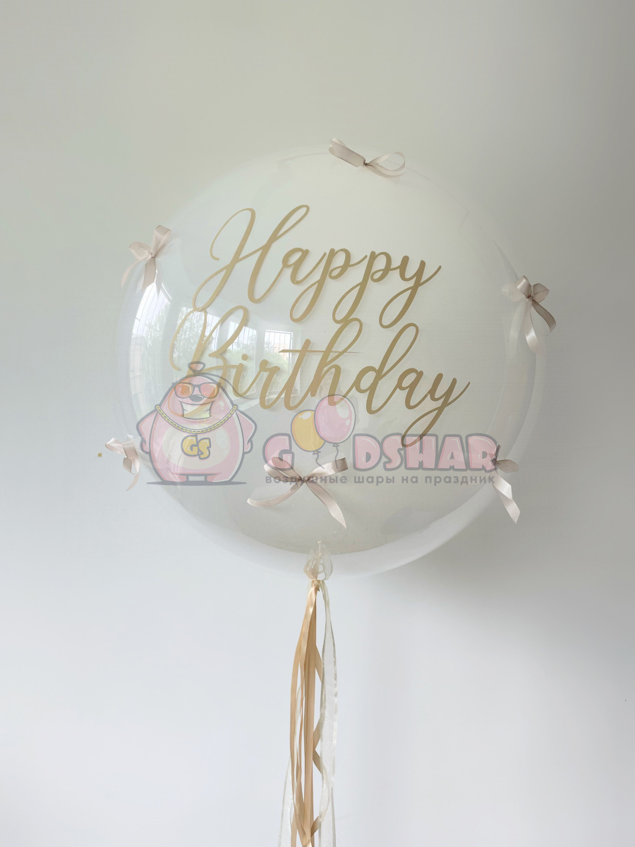 "Стеклянный" шар-гигант с бантиками и индивидуальной надписью.