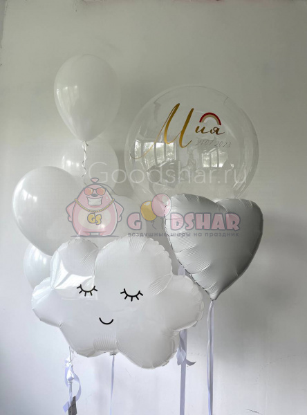 - Шар прозрачный "Баблс" с индивидуальной надписью и перьями,