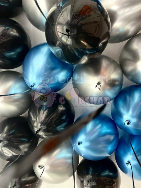 20 штук ( 7 пастель черного цвета, 6 шаров "Хром серебро" и 7 шаров "Хром синий")