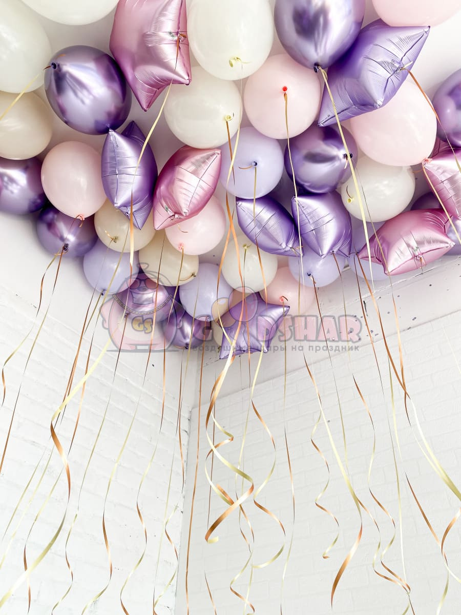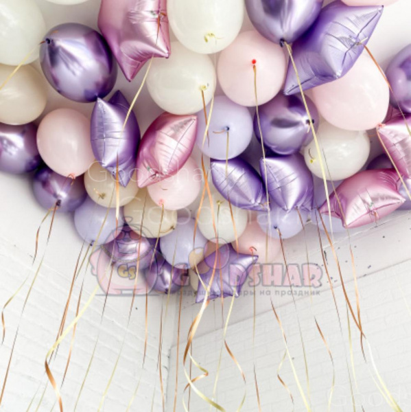 В набор входит 10 фольгированных шаров 45 см, 10 шаров "Хром" и 20 шаров "Пастель".