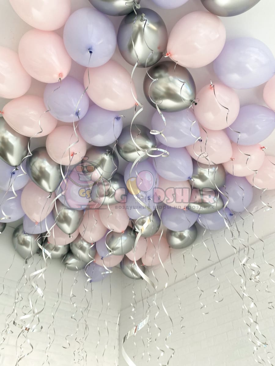 Шары под потолок "Розовый, фиолетовый и серебро" 30 шт.
