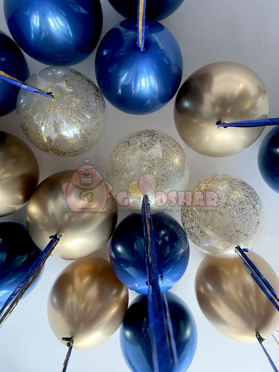 В набор входит 20 воздушных шаров - 4 шарика "С конфетти", 8 шаров "Хром золото" и 8 шаров " Хром синий".