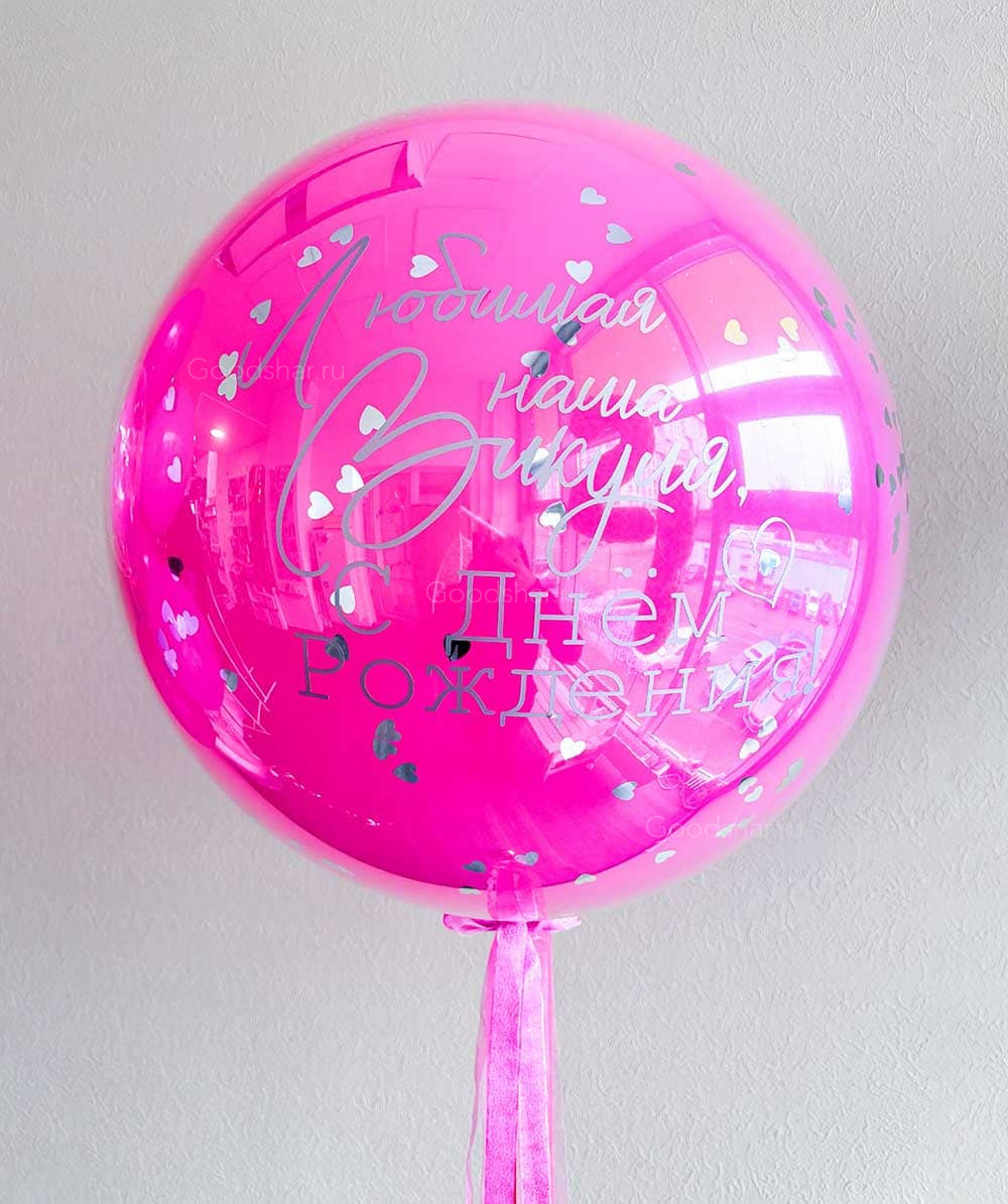 Яркий и страстный стеклянный шар в цвете фуксия — для самой любимой девушки. Внутри — воздушное наполнение и индивидуальная надпись, которая передаст всю глубину чувств и благодарности. Подарок, который будет согревать сердце и напоминать о том, как она дорога.