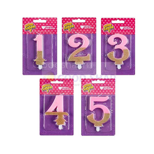 Свечи-цифры Розовые блеск 7,5см в ассортименте