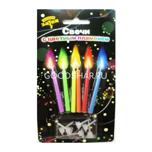 Свечи для торта с цветным пламенем, 6 шт.