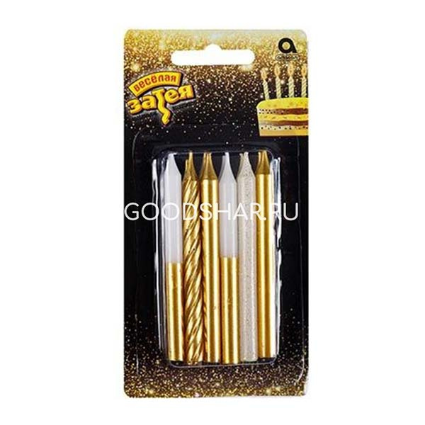 Свечи д/торта золото/белый блеск 8см 12шт