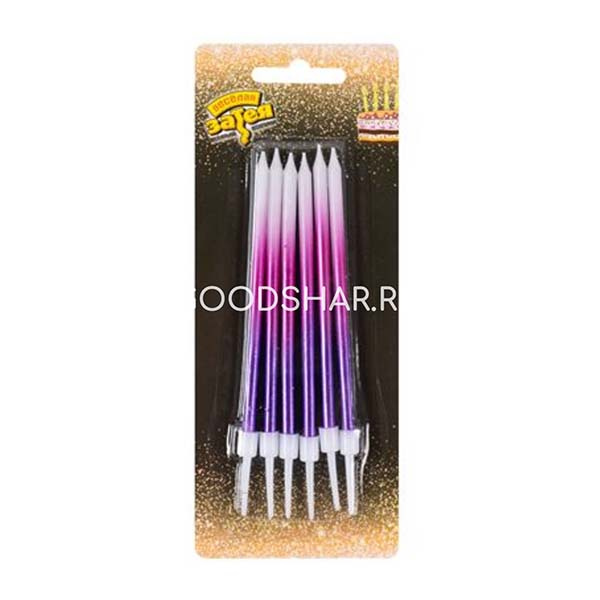 Свечи Омбре розовый/фиолетовый с подставкой 11см 6шт