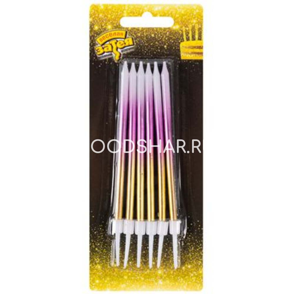 Свечи Омбре розовый/золотой с подставкой, 11 см (6 шт.)